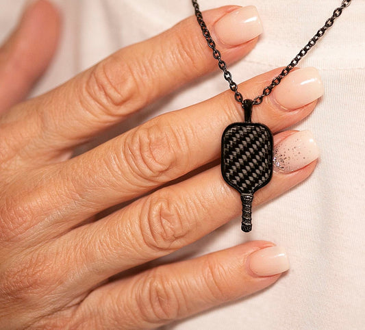 Black Stainless Steel Carbon Fiber Pickleball Paddle Necklace Including Chain