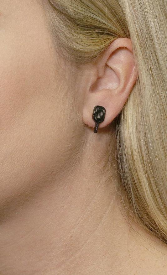 Black Stainless Steel Carbon Fiber Pickleball Paddle Stud Earrings